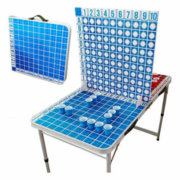 Bordet er laget av aluminium og er derfor svært lett i forhold til størrelsen – det veier kun 9 kilo. Bordflaten er naturligvis utsmykket med lag-farger, samt sirkler som viser hvor koppene skal stå. For å virkelig være klar for en god fest, vil denne overflaten være resistent mot riper og skader, samtidig som det er svært enkelt å vaske. Dette er Beer Pong bordet for deg som vet hvordan man skal arrangere fester!