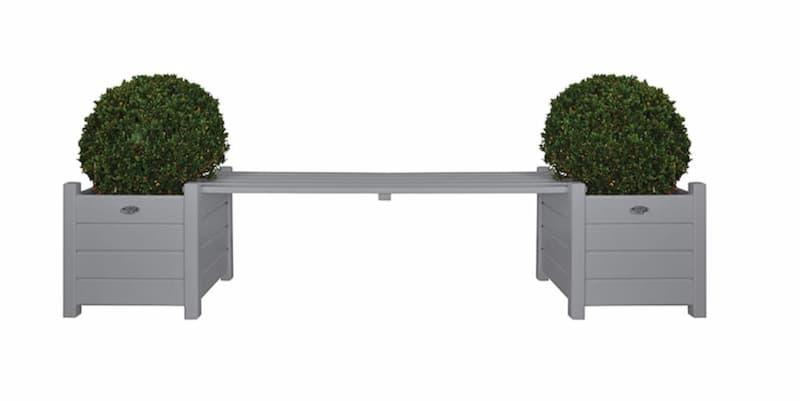 Klassisk benk i heltre akasie med to plantekasser
