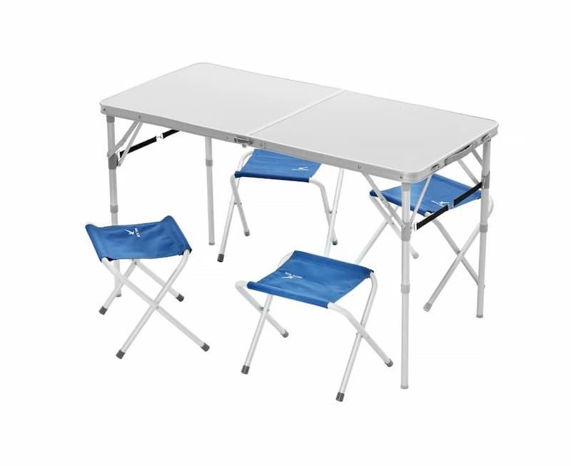 I denne pakken fÄr du to smarte lÞsninger i ett produkt! Dette er nemlig bÄde en krakk og et campingbord! NÄr du kun trenger en krakk, tar du den med deg pÄ tur slik som den er. Da har den en sittehÞyde pÄ maksimalt 45 cm, som det er svÊrt enkelt Ä justere. Sitteflaten har en diameter pÄ 25 cm, og den tÄler maksimalt 120 kilo. Krakken tar svÊrt liten plass nÄr den er slÄtt sammen. Dette betyr at den er ypperlig Ä ha med seg pÄ tur, og fÄr fint plass i sekken din.
