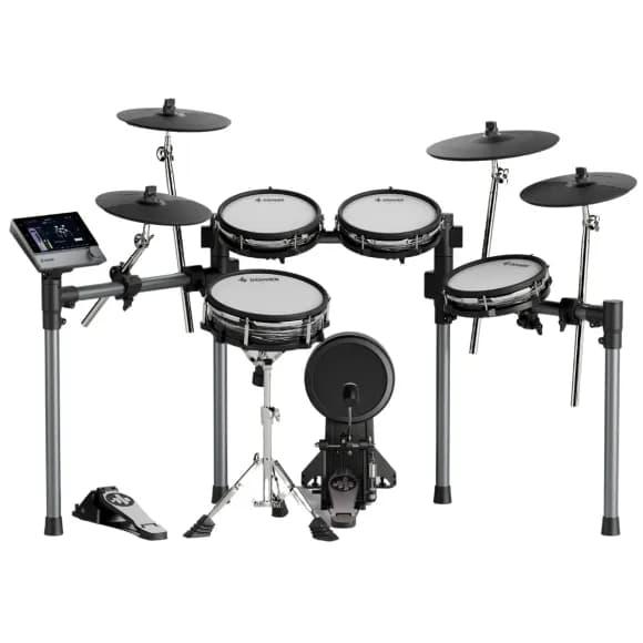 Donner DED-20 er et ultrakompakt elektronisk trommesett med 7 pads og 2 pedaler. Settet har innebygde høyttalere, hodetelefonutgang og mulighet for å spille musikk fra mobil eller nettbrett, praktisk for barn som vil spille til backingtracks. USB-C-utgangen gjør det enkelt å koble til PC for opptak eller undervisningsapper, og MIDI-kompatibiliteten åpner for videre bruk i digitale settinger.