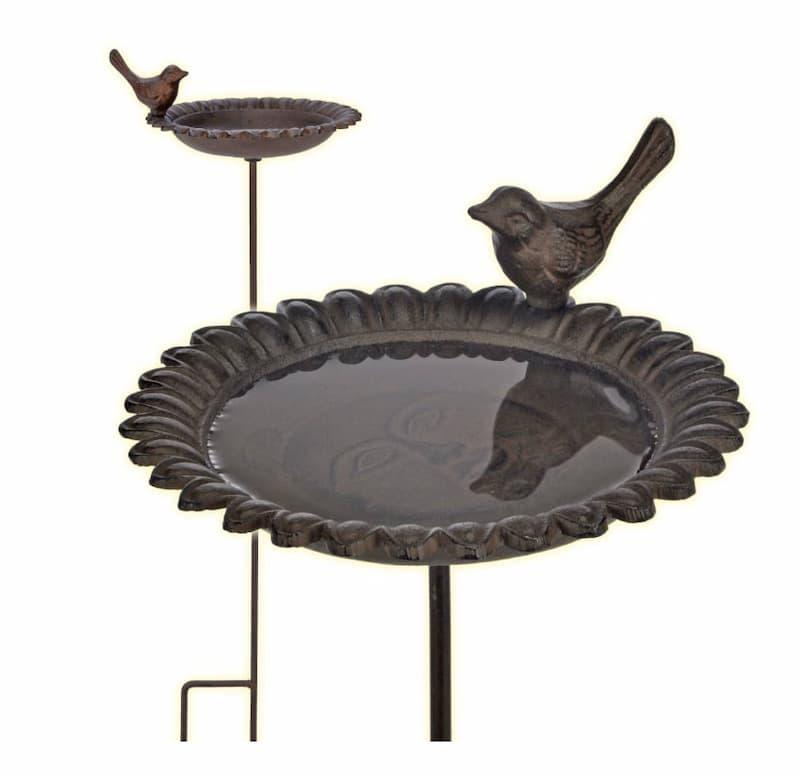 Dette fuglebadet har en diameter på 23,3 cm, og er 8 cm høy. I midten av fatet sitter det en liten fugl i metall, som gjør dette til et vakkert produkt selv når det ikke er småfugler der! Hvis du vil skjemme bort fuglene på andre måter, kan du fint også bruke denne modellen som en fuglemater. Siden dette er et hengende fuglebad, byr det på flere muligheter når du skal plassere det – du trenger ikke stor plass, og du kan like fint henge det i et hjørne av verandaen din, som i et tre i hagen!
