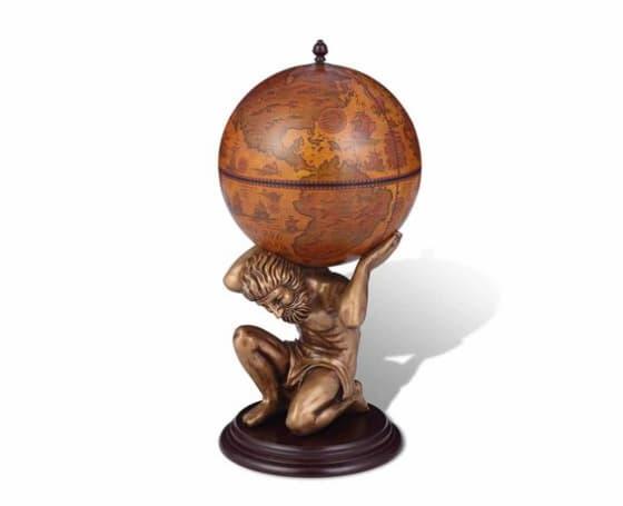 Denne globusen byr på flott estetikk, litt læring om verdens land, og smart oppbevaring for drinkene dine! Globusen er 38 cm x 33 cm x 48 cm stor og veier 3,2 kilo. Når den er lukket er kan du nyte den som en ren globus dekket med flotte, nautiske kart inspirert av 1600-tallet.