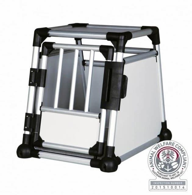 Dette bilburet festes enkelt og sikkert med setebeltet, og egner seg godt til mindre hunder (og katter) som veier opptil maks 15 kilo. Størrelsen på buret er 46,5 cm x 47,2 cm x 57 cm. Dette er et produkt som er kollisjonstestet av TÜV og buret er designet slik at det passer inn i de fleste biler, både i framsete og i baksete.