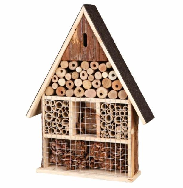 Først ser vi på et flott insektshotell som vil kunne tiltrekke seg både bier og sommerfugler! Dette hotellet har to deler. Den øverste delen er spesielt designet for å passe for sommerfugler mens den nederste delen vil være perfekt for solitære bier og veps. Hotellet er 14 cm langt, 24 cm bredt og har en høyde på 35 cm. Det har et godt og tradisjonelt design som du med fordel kan henge på veggen ute – gjerne mot sør! Plassering av insektshotell har faktisk mye å si. Vegger mot sør får nemlig mest sollys, noe som dine nye insekt-venner kommer til å sette stor pris på. Fest gjerne hotellet 1 til 1,5 meter fra bakken slik at andre skapninger ikke kommer til det.