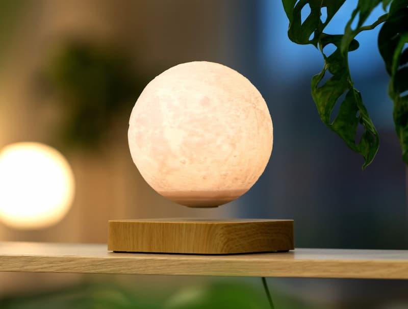 Dette er en svevende månelampe, som holder seg svevende over basen sin takket være sterke magneter. Ikke bare vil din lille måne sveve av seg selv, den vil også rotere sakte for en ekstra flott effekt! Slik blir dette en ekstra magisk månelampe som både små og store vil elske. Selve månen er 3D-printet og du kan kjenne de ulike kratrene på månens overflate. Lyset inne i månen gir den en glødende effekt.