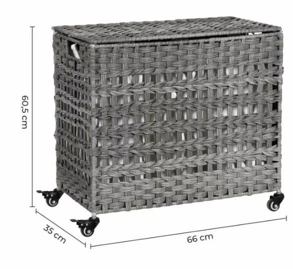 Det er nettopp en slik vi ser på her. Kurven har 3 seksjoner som gjør det enklere å fordele klesvasken raskt og effektivt. To av disse romene har svært god plass, og er 23 cm x 30 cm x 72 cm store. Et tredje og mindre rom er 23 cm x30 cm x 26 cm stort, og passer fint til for eksempel delikate tekstiler, undertøy, sokker og lignende!