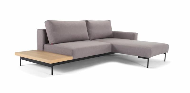 Du kan velge mellom ulike typer stoff og flere vakre fargevarianter når du bestiller din nye sovesofa. Som en ekstra gave til deg, har sjeselong-delen en smart oppbevaring, som vil passe utmerket til sengetøy og lignende som det er kjekt å ha når man venter gjester!