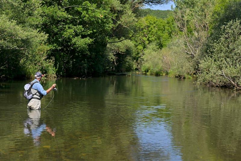 Justerbare neprenstropper gjør at du kan tilpasse passformen etter eget behov. Formstøpte knebeskyttere gir ekstra holdbarhet på områder som utsettes for mye slitasje. Den utvendige brystlommen med borrelåslukking holder småutstyr lett tilgjengelig mens du fisker. Nylonringer på brystet lar deg henge fast diverse tilbehør du måtte trenge.