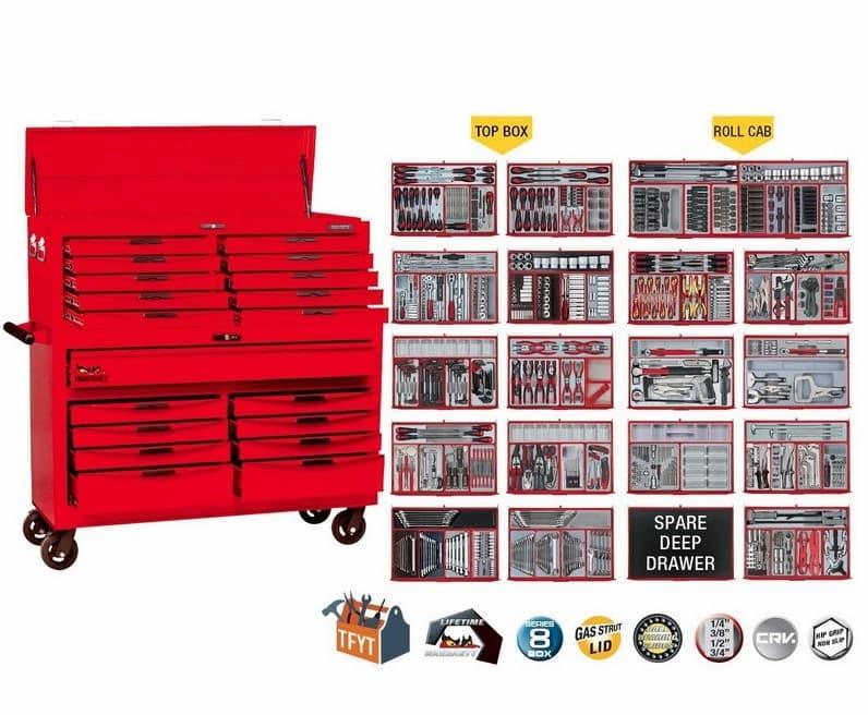 Skuffene har autoreturn som gjør at de glir mykt tilbake på plass, mens quicklock-funksjonen sikrer at de låses ordentlig når du lukker dem. Gummihjulene ruller lett over verkstedsgulvet og etterlater ingen merker, selv når vognen er tungt lastet. Master låsesystemet på siden gir deg kontroll over hvem som har tilgang til verktøyet.